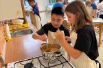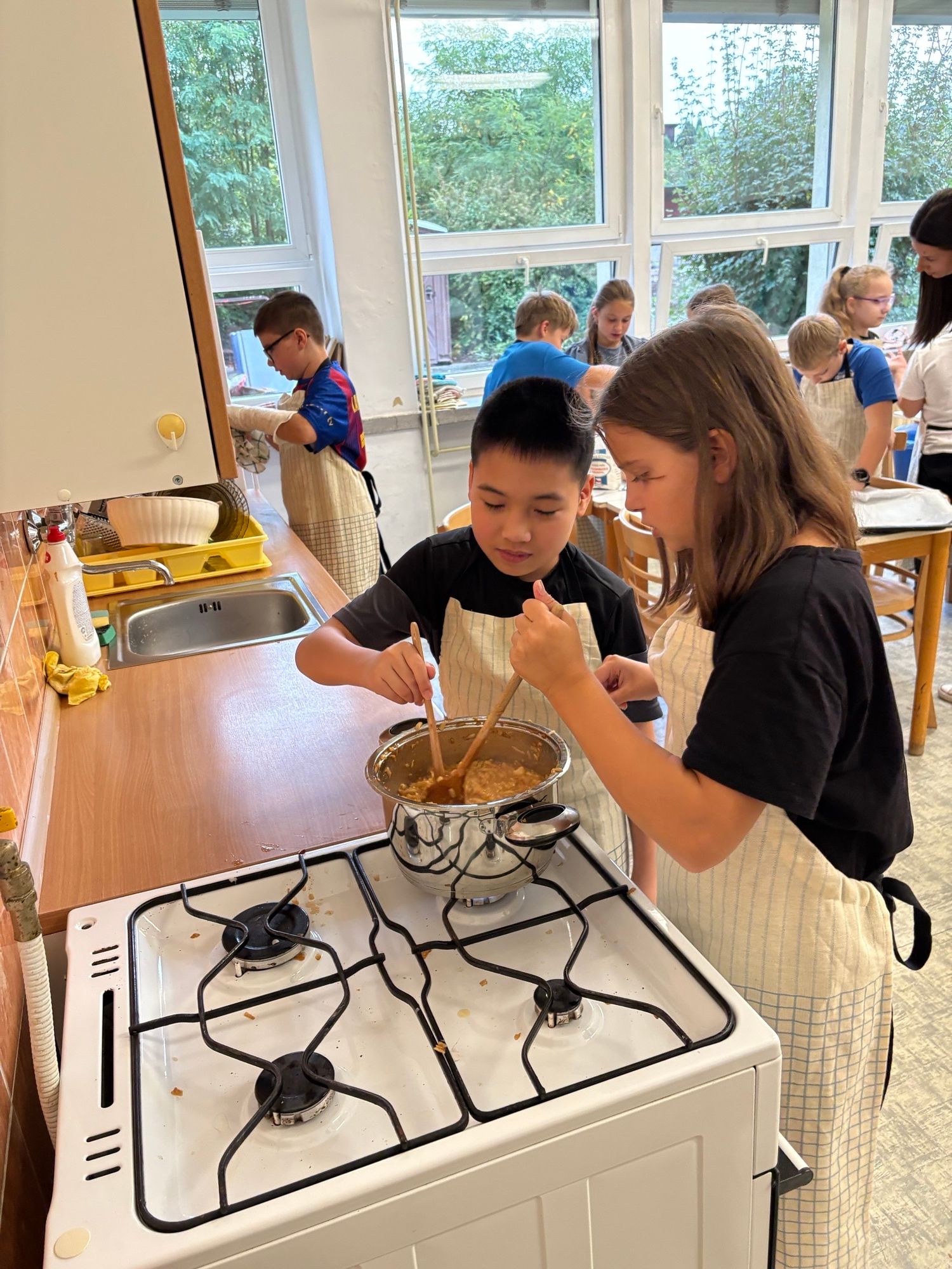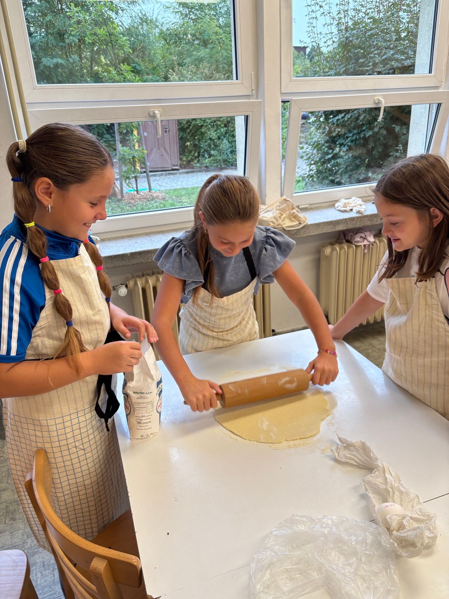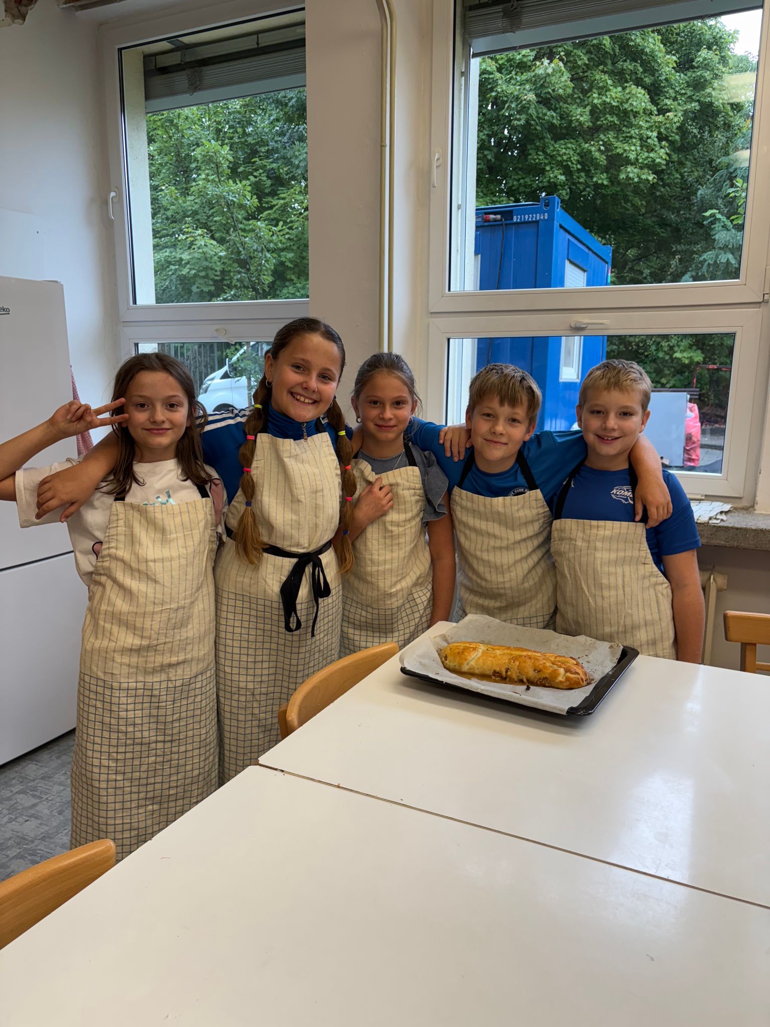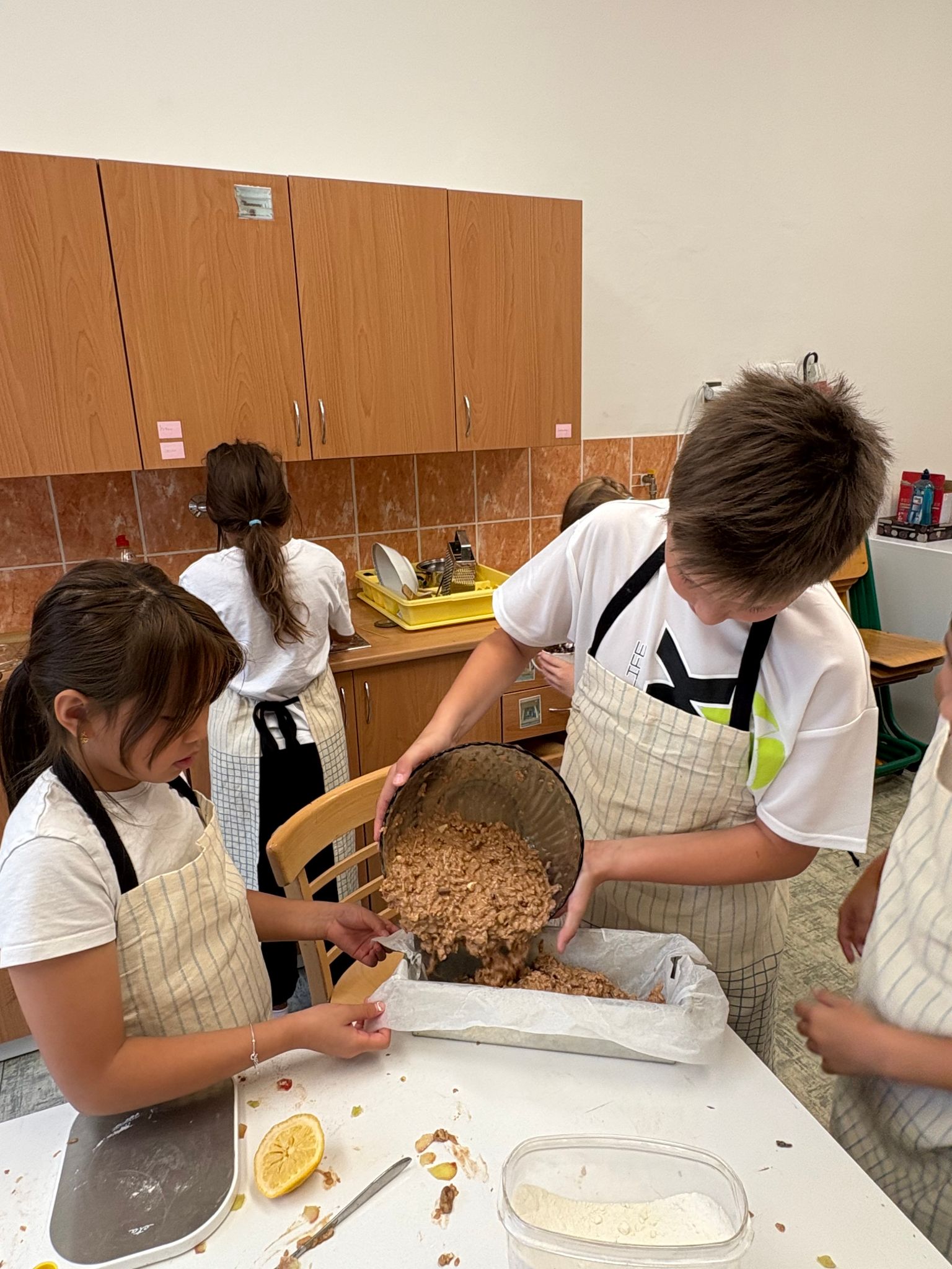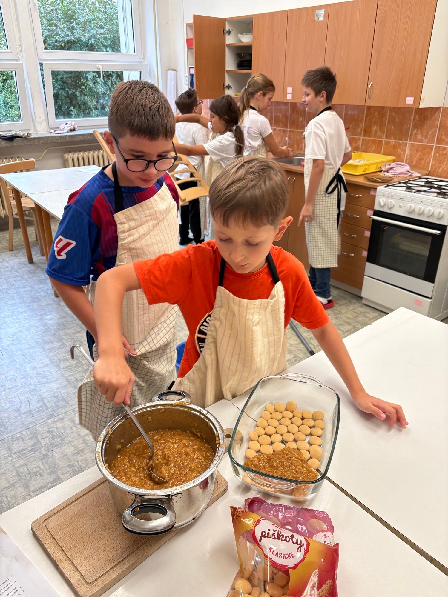 Děti si v týmu rozdělily úkoly a pustily se do pečení. Z kuchyně se linula vůně skořice a pečených jablek a napětí stoupalo, kdo si s úkolem poradí nejlépe. Vznikly tři výborné dezerty.