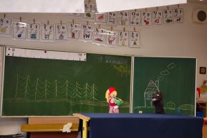 V rámci výuky českého jazyka si žáci z 6. A připravili maňáskové divadelní vystoupení.