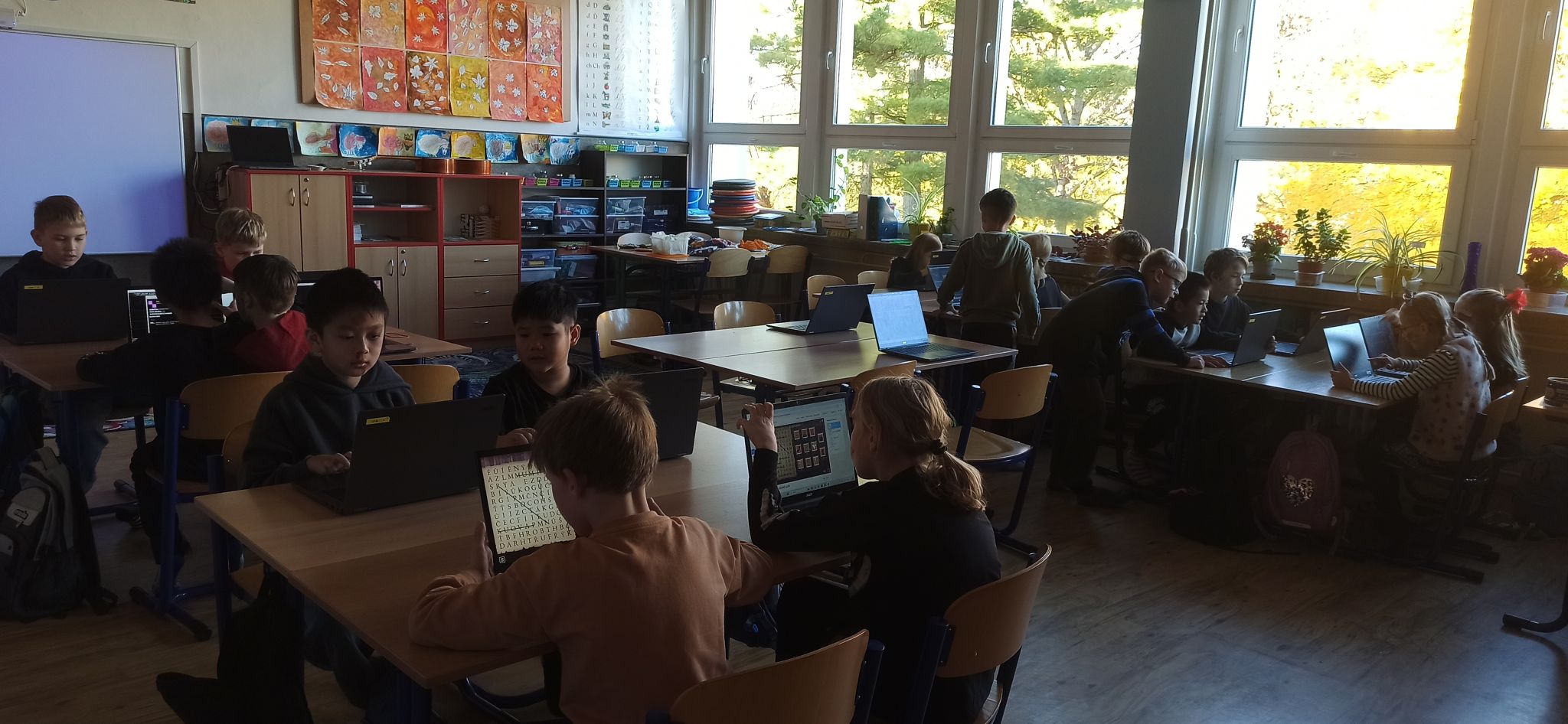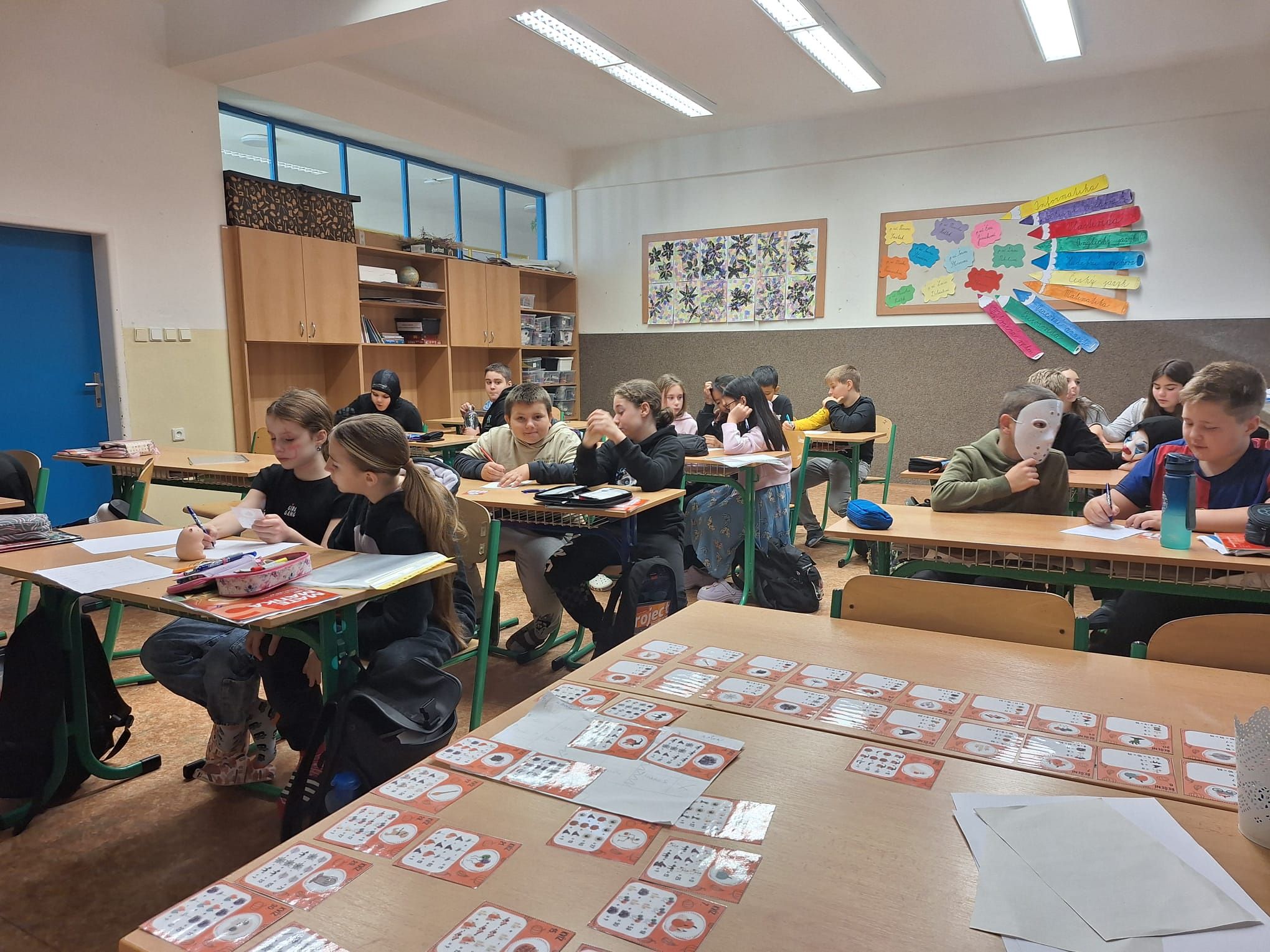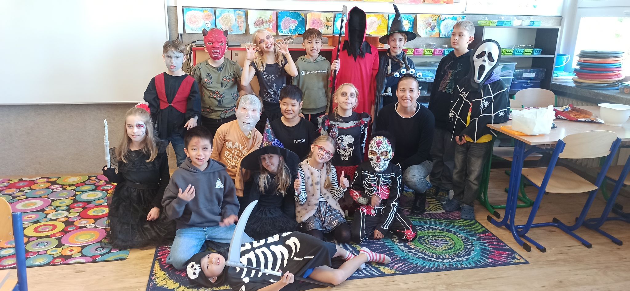Paní vychovatelky z družiny i paní kuchařky v jídelně každý rok vytváří halloweenskou náladu v podobě krásných dekorací – a členové školního parlamentu nechtěli zůstat pozadu. Na dnešní den vyhlásili den v halloweenských převlecích. Ve třídách kromě kostýmů vládly tematicky zaměřené hry a aktivity, které si pro děti přichystaly paní učitelky – jak to v některých třídách vypadalo, můžete zjistit z fotogalerie.