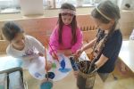 Zlatým hřebem programu byla akce venku. Na školním hřišti na nás čekala dobrodružná stezka. Na jednotlivých stanovištích děti plnily úkoly, odpovídaly na záludné otázky o přírodě a sbíraly písmenka do tajenky.