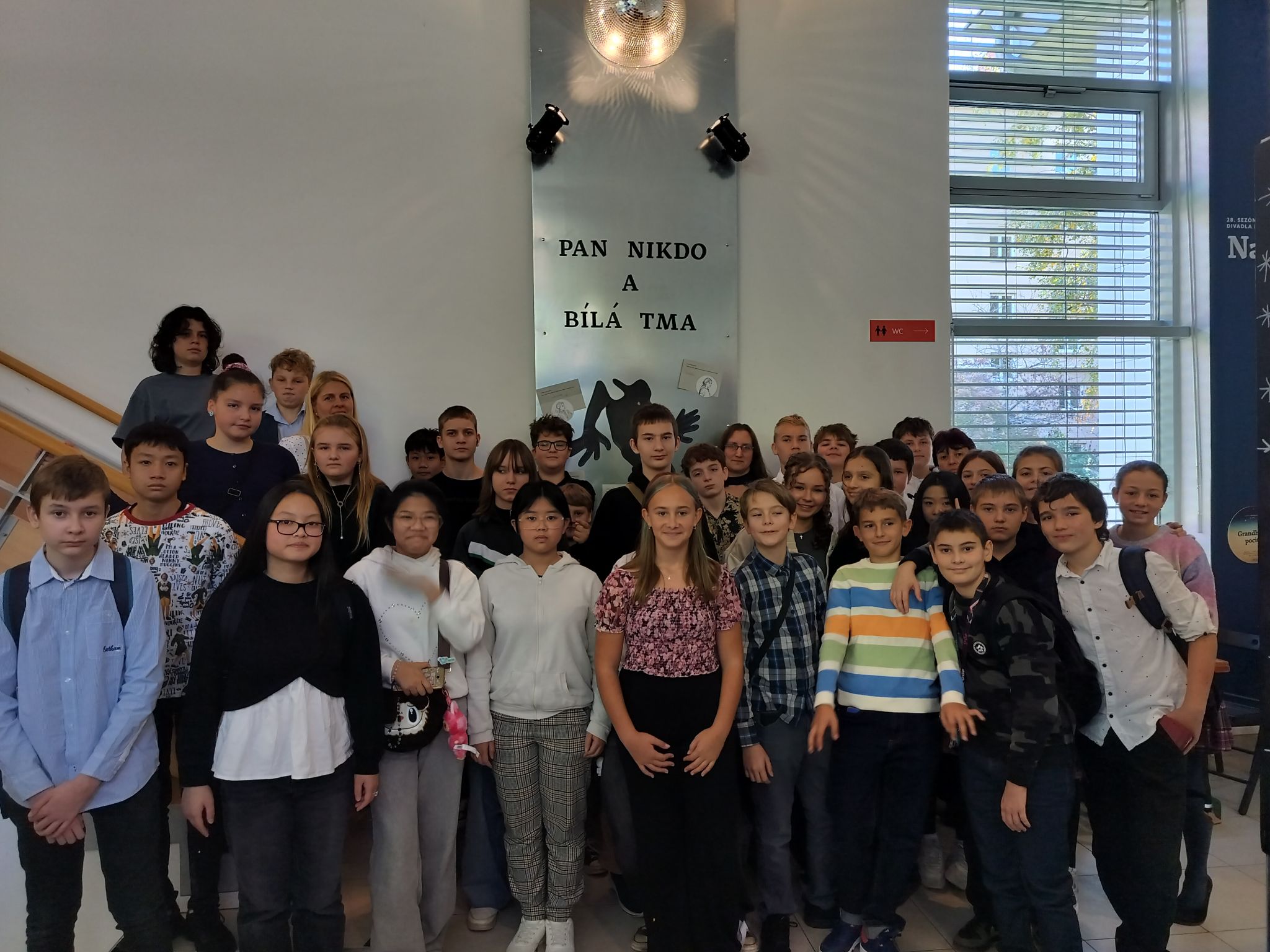 Ve středu 8. 10. 2025 jsme vyrazili v hojném počtu do divadla Polárka, které dětem i dospělým zprostředkovává silné umělecké zážitky. Divadlo se zaměřuje na zpracování aktuálních témat týkajících se zejména dětského světa. V tomto představení jsme měli možnost prozkoumat pocity, které jsou spojeny se strachem, obavami a pocitem nebezpečí. Divadelní představení bylo připraveno na motivy knihy Pan Nikdo a bílá tma české autorky Dory Kaprálové.