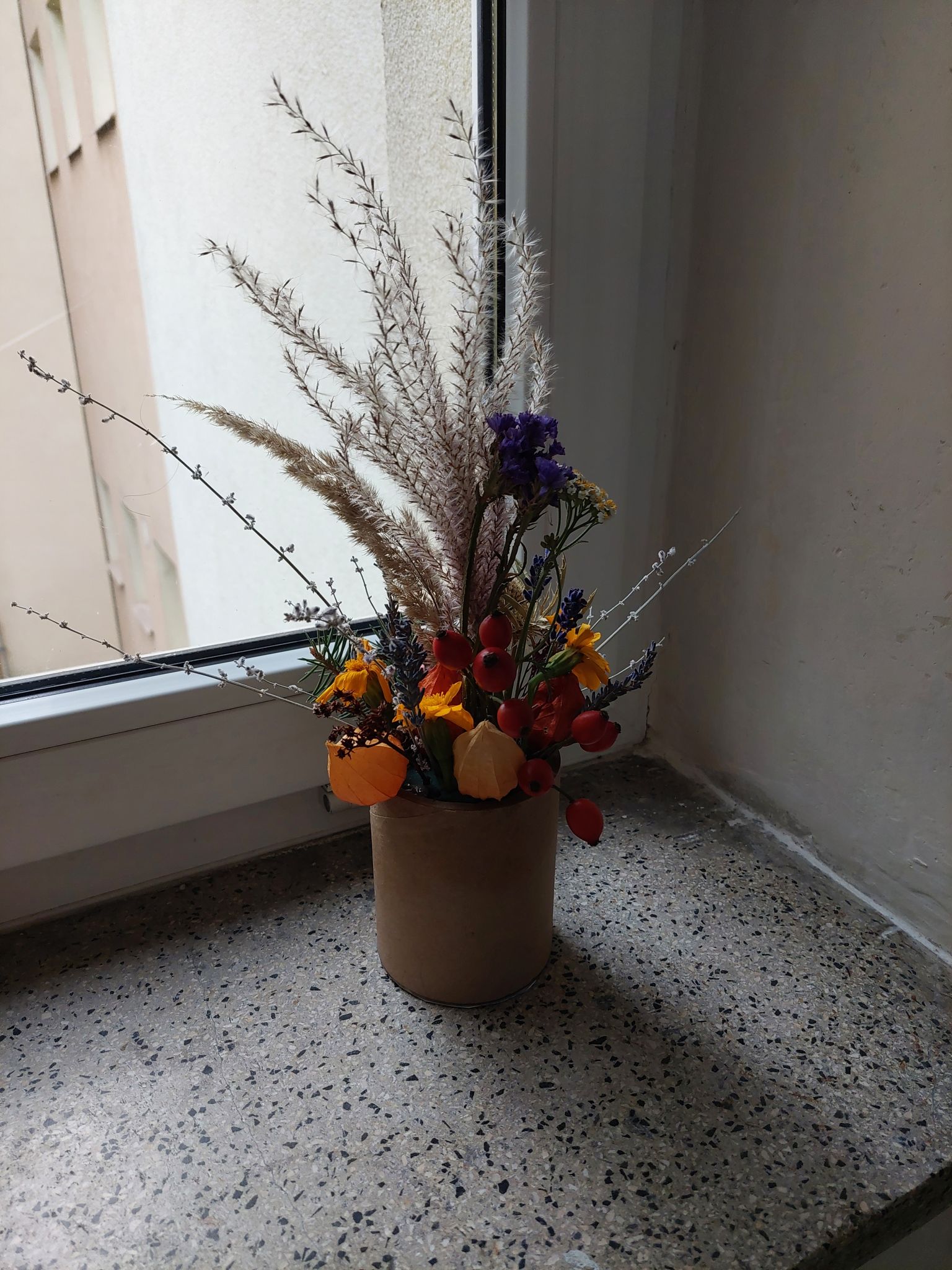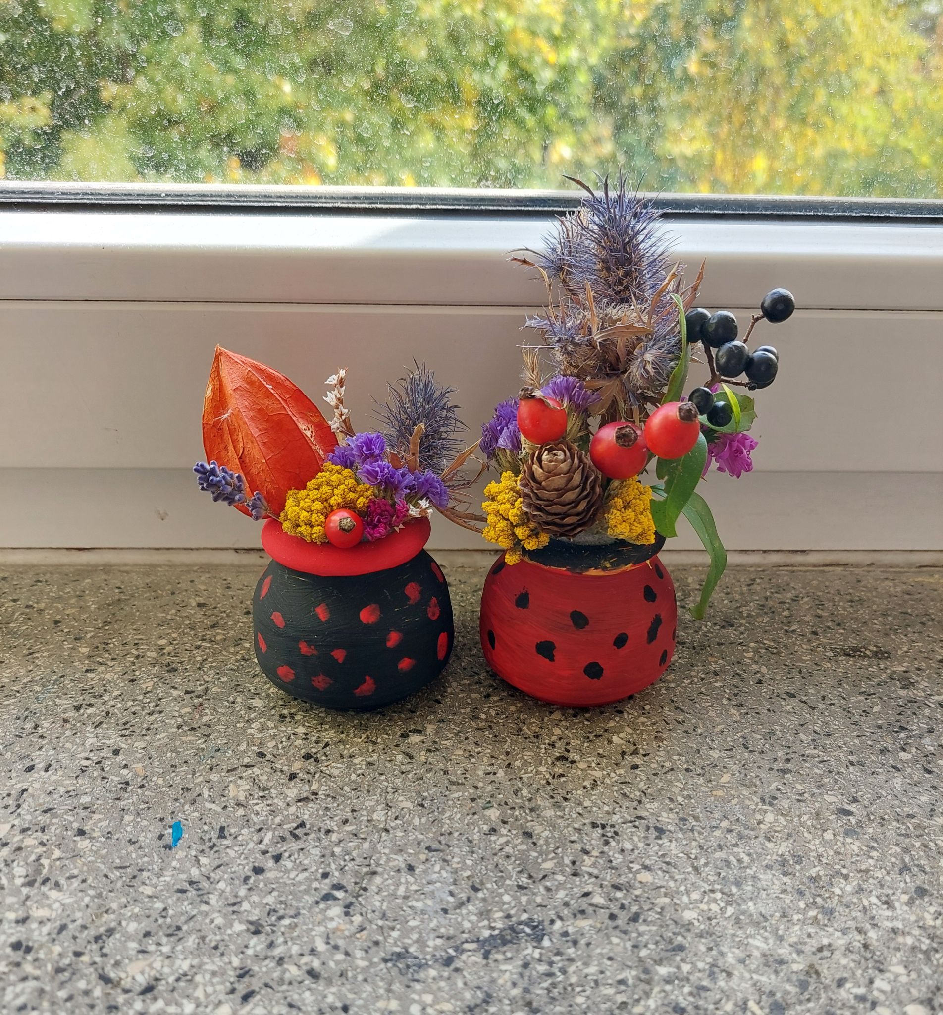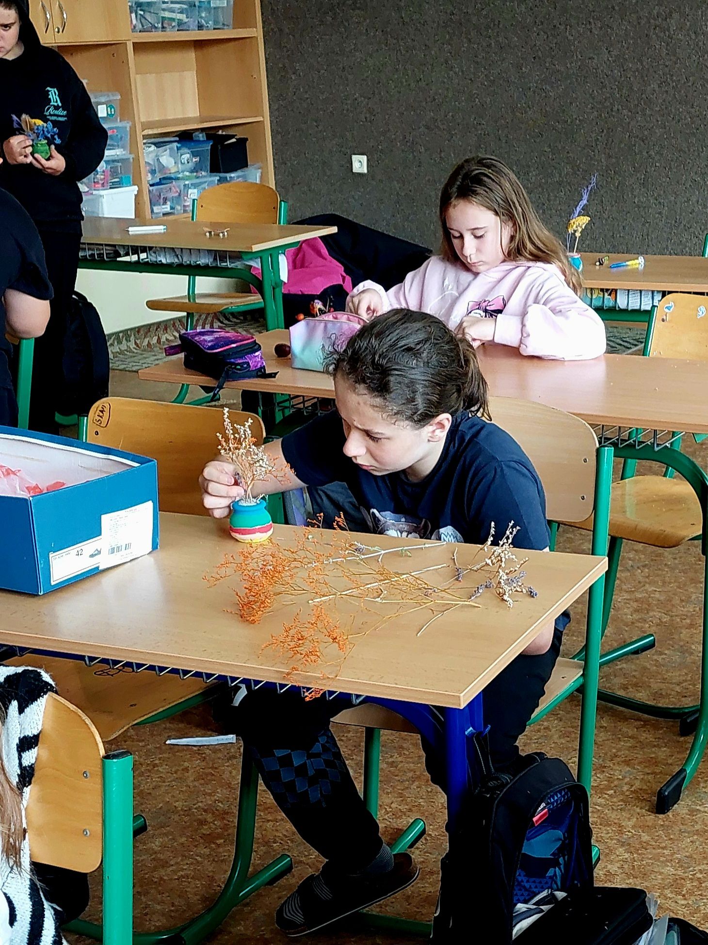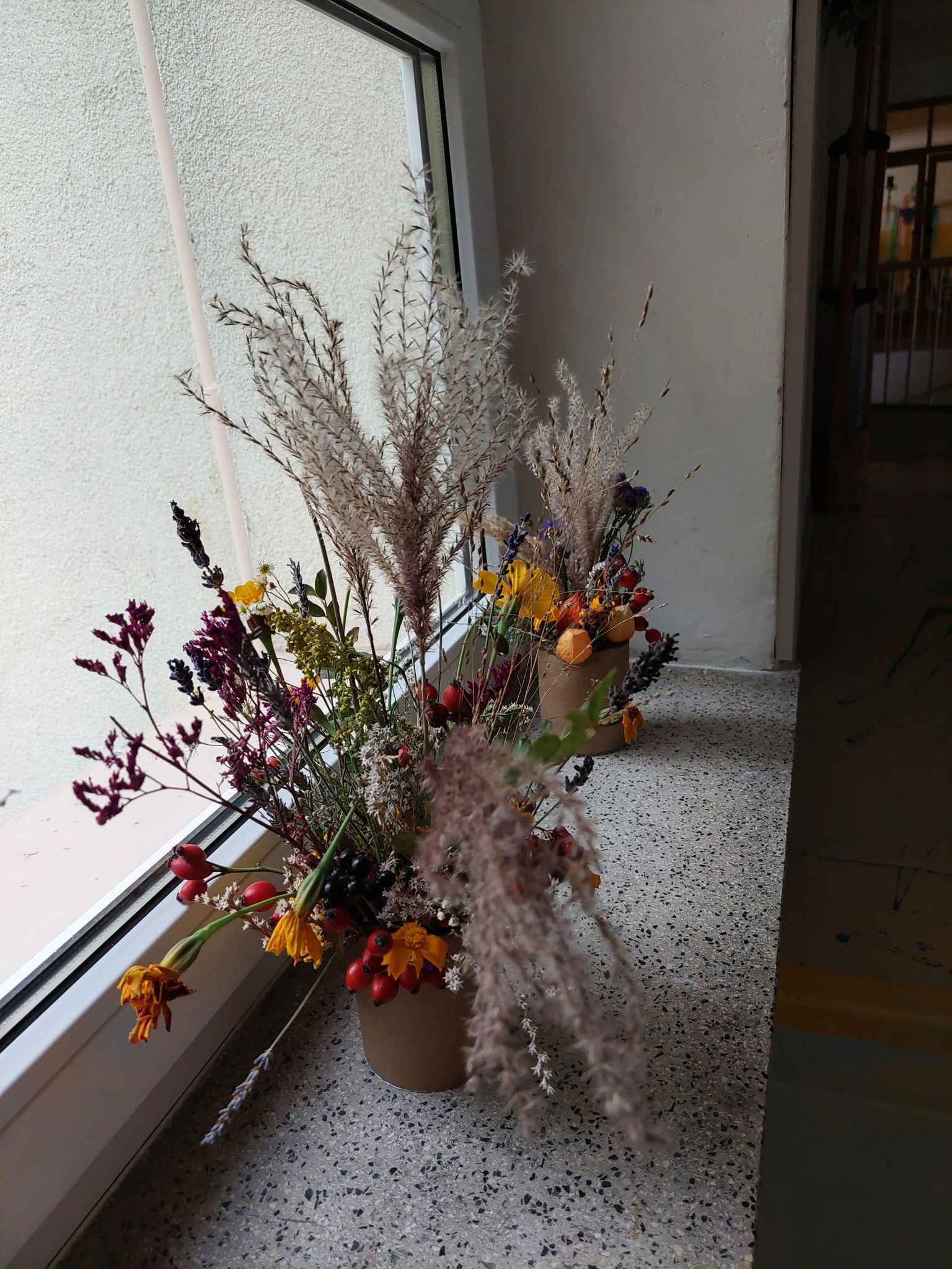 V praktických činnostech jsme si tentokrát vyzkoušeli práci floristů a pustili se do aranžování keramických váziček suchým přírodním materiálem. Třída byla příjemně provoněná, tvoření nás bavilo, a protože sušeného i čerstvého materiálu jsme měli velké množství, vypichovali jsme ještě další improvizované nádoby, které zdobí okna na školní chodbě. Těšíme se, že tvoření z přírodního materiálu si znovu zopakujeme, třeba ….….. před Vánocemi.